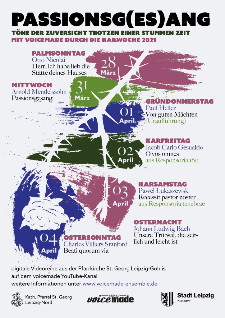 Ein wunderbarer Zeitpunkt, um mit der Präsentation des Plakates bereits jetzt herzlich zur Begleitung unserer digitalen Musikreihe in der Karwoche einzuladen. Einmal mehr danken wir Konstantin Schmidt für die tolle Gestaltung!