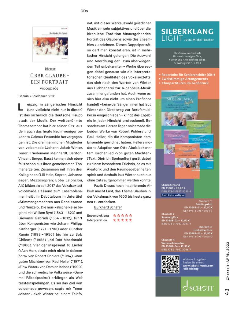 Wir freuen uns sehr, in der April-Ausgabe der Chorzeit nochmals eine so positive Rezension unseres Debüt-Albums „Über Glaube – Ein Portrait“ lesen zu können. Herzlichen Dank dafür nochmals an Dr. Burkhard Schäfer!