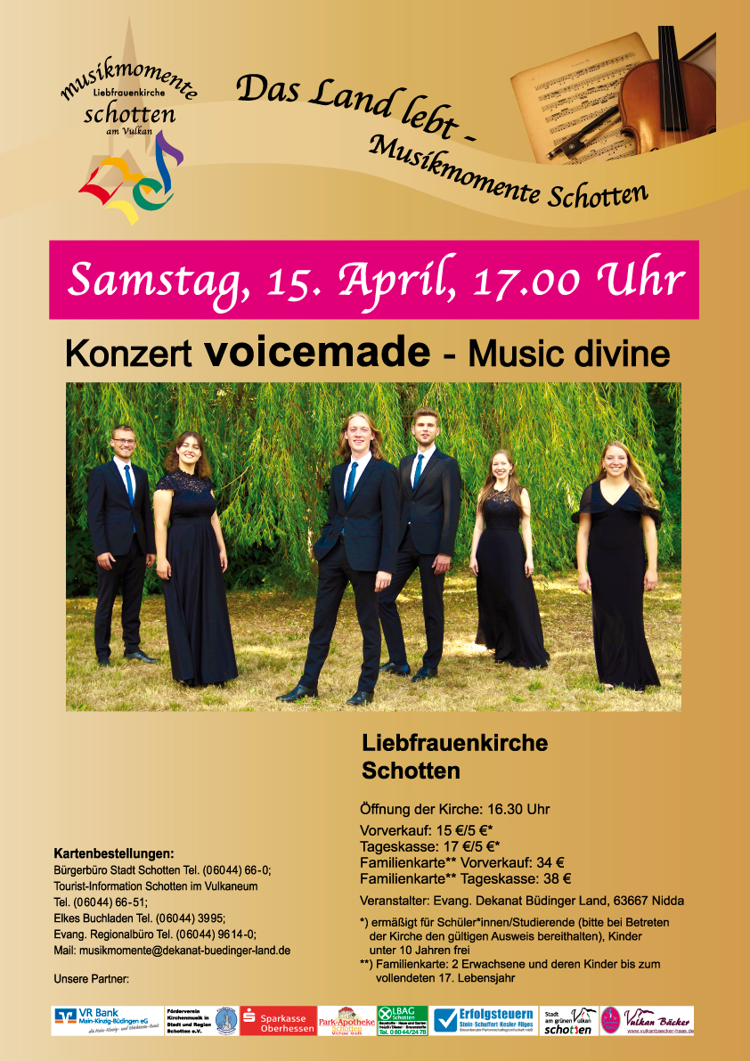 Das anstehende Wochenende bringt für uns wieder einmal zwei wunderbare, nachösterliche Konzertgelegenheiten: Am 14.04. dürfen wir unser Debüt in der Stiftskirche Stuttgart im Rahmen der „Stunde der Kirchenmusik“ geben, bevor wir dann am Samstag in der Liebfrauenkirche Schotten mit einem gemischten Programm zu hören sein werden. Herzliche Einladung!