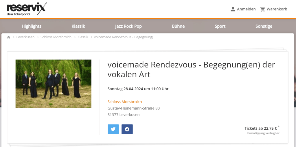 Eineinhalb Wochen nach dem „Rendezvous“ in Kleve geht es für uns im Rheinland direkt weiter und wir werden das Programm im malerischen Ambiente des Schloss Morsbroich in Leverkusen am Sonntag um 11 Uhr noch einmal auf die Bühne bringen. Herzliche Einladung dazu!